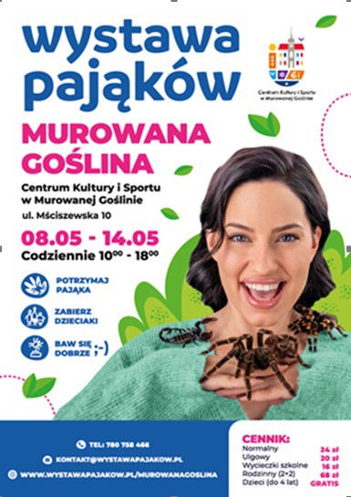 W dniach 08.05 – 14.05.2025r. od 10:00 do 18:00 w Centrum Kultury i Sportu w Murowanej Goślinie odbędzie się Wystawa Pająków, czyli wyjątkowe, edukacyjne wydarzenie.