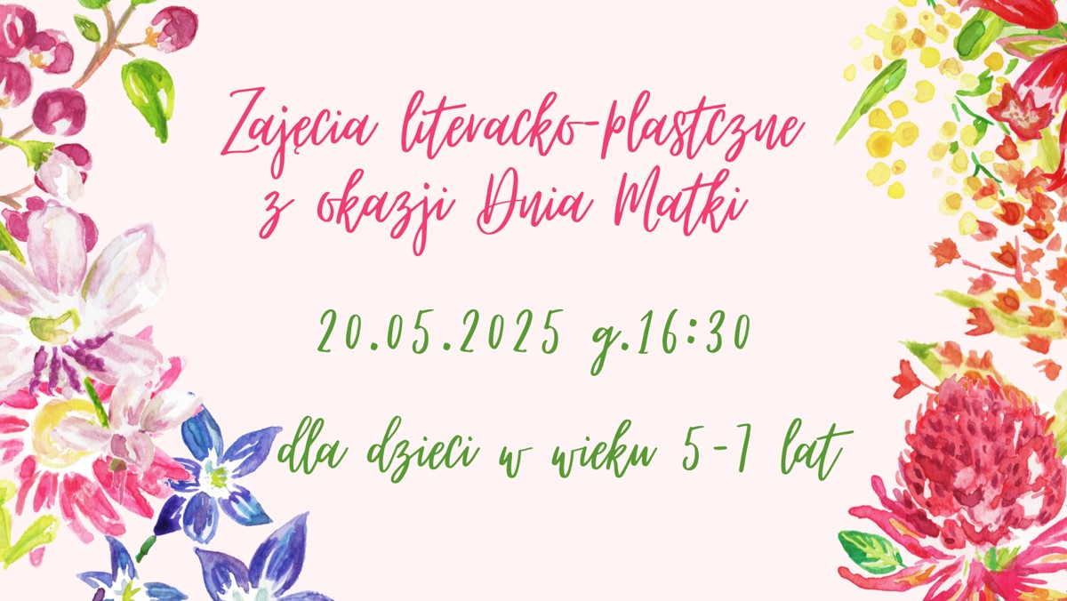 Zapraszamy dzieci w wieku od 5 do 7 lat na warsztaty literacko-plastyczne, które odbędą się 20.05.2025r. o godzinie 16:30, udział bezpłatny.