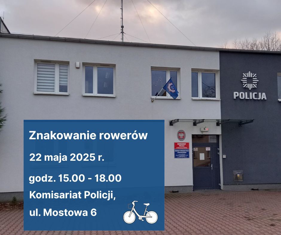 Uprzejmie informujemy, że w czwartek 22 maja 2025 r. na Komisariacie Policji w Murowanej Goślinie (ul. Mostowa 6) odbędzie się kolejna akcja znakowania rowerów.