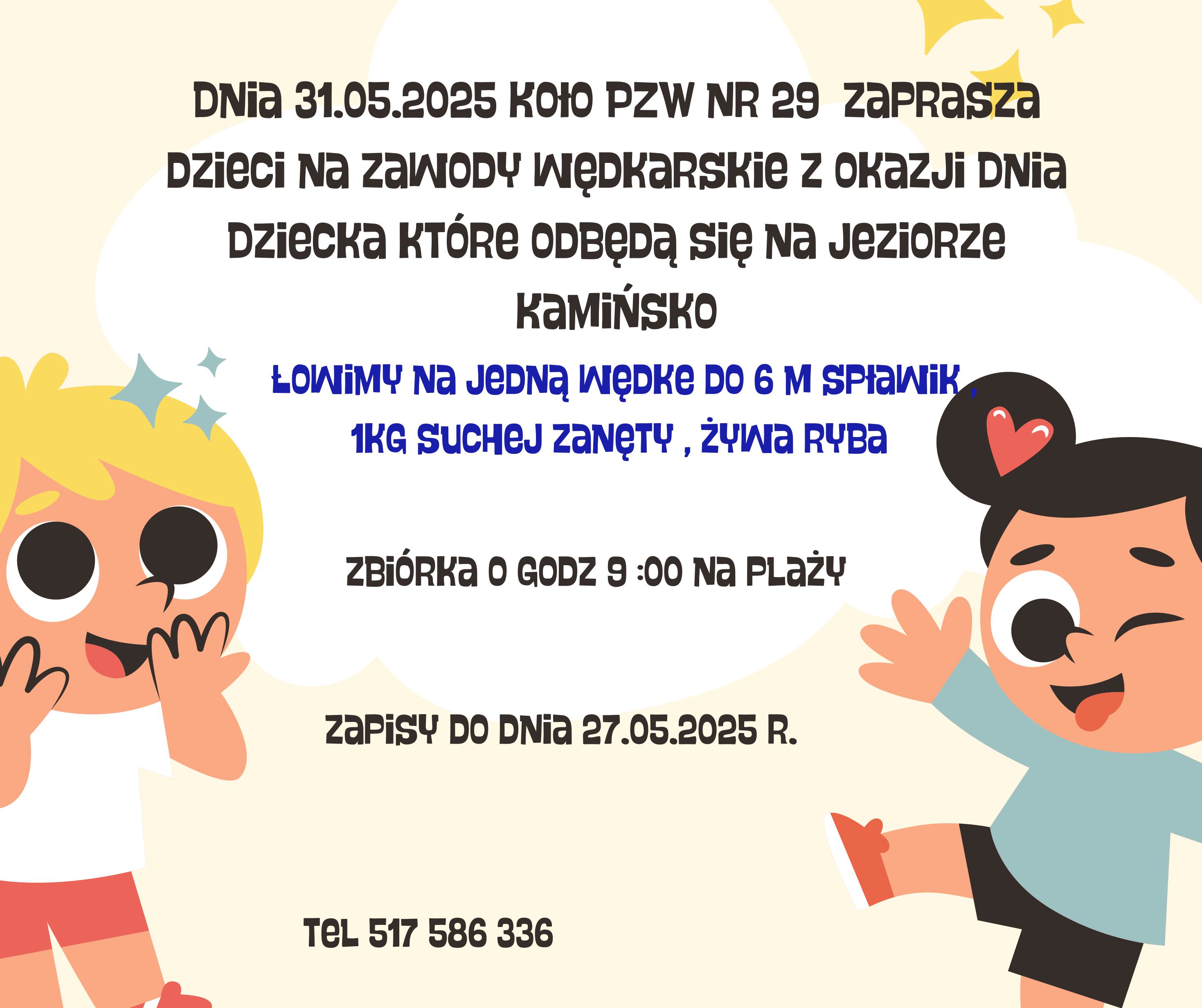 Koło PZW nr 29 zaprasza na zawody wędkarskie dla dzieci z okazji Dnia Dziecka.