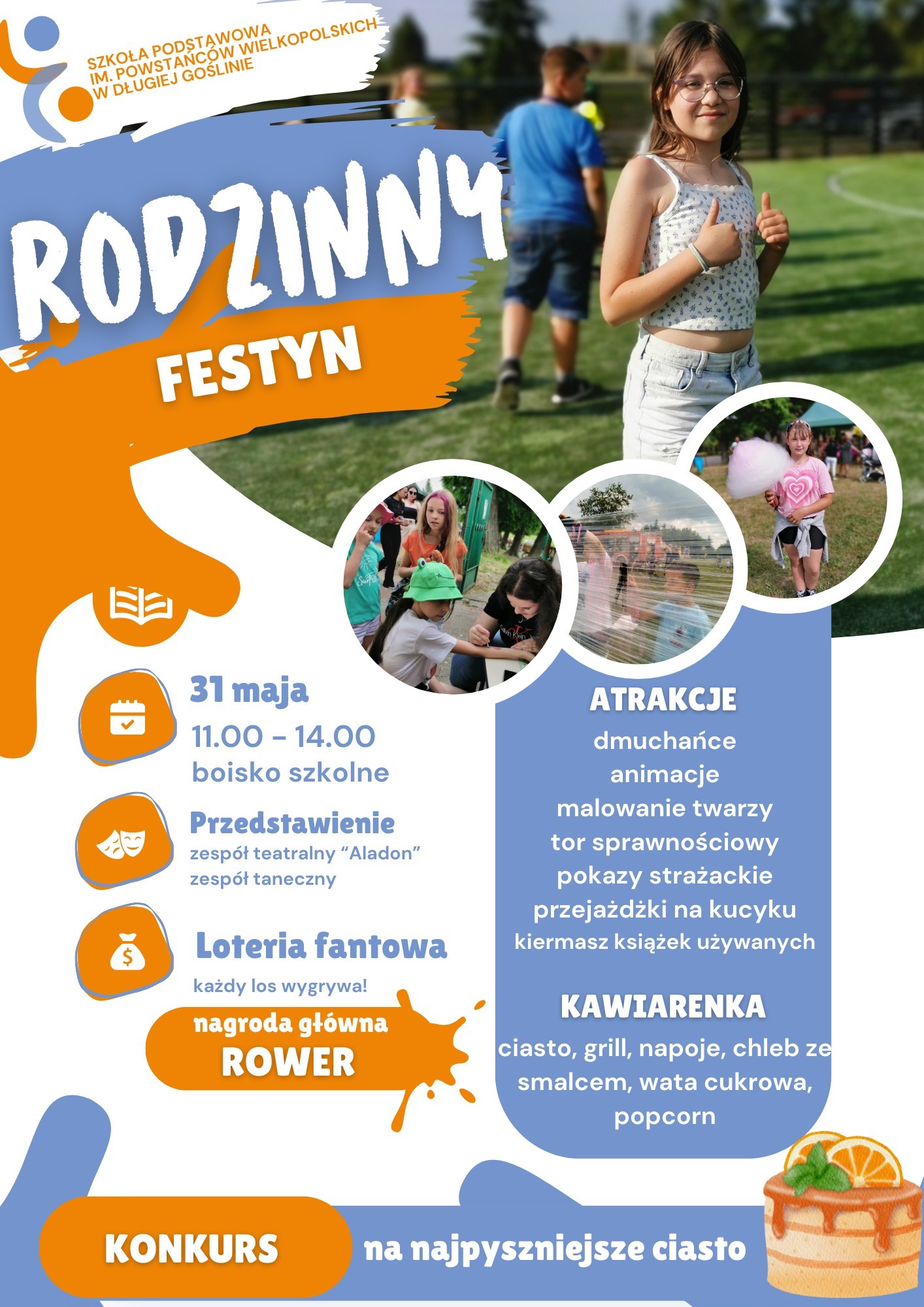 Szkoła Podstawowa im. Powstańców Wielkopolskich w Długiej Goślinie zaprasza na Rodzinny festyn,